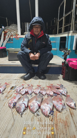 #갈치낚시의명가여수뉴스타피싱 #붉바리,민어외수질명가뉴스타피싱#한치이카메탈명가뉴스타피싱#타이라바낚시명가뉴스타피싱 #심해갑오징어명가뉴스타피싱 #문어낚시의명가뉴스타피싱 #두족류낚시의명가뉴스타피싱 #허리벨트식구명조끼무상대여 #현FTV여수통신원활동중#16석전좌석투채비가능 #전좌석uv축광기설치!! #매일출항합니다 #방진복무료증정#서울한강라면뽀글이비치완료⭐️⭐️⭐️⭐️⭐️⭐️⭐️⭐️⭐️⭐️⭐️⭐️⭐️???? 뉴스타피싱 1/16 타이라바 호조황!✔️잦은 민원으로 고기를 바닥에 줄세워서 사진찍는건 앞으로 하지않겠습니다 고기가 사진찍는동안 많이 상하나봅니다???? 1/16 타이라바 조황 브리핑 합니다역시나 여수권 참돔은 정말 잘나옵니다~장원 부부합산 48마리 대박입니다!!!오전에는 조금 뜸하다가 오후들어서 계속끊임없이 나와줍니다~ 배전체 대략 총합200수넘게 카운터 했습니다~ 그이상은별의미없어서 세다 말았습니다~모든분들이 두자리수 손맛 보셨습니다~아쉽게도 빠가는 못만났습니다 다음에는꼭 빠가를 만나보겠습니다~^^다음주 기상확인해보니 월요일 하루만 좋고화요일부터는 기상악화네요~다음주 월요일부터 타이라바 1척 모집합니다!!심해갑오징어도 1척 모집합니다오늘하루도 정말 수고많으셨습니다!!!예약주세요~^^☎️문의 010 4795 1214 010 3764 0114http://newstar.sunsang24.com/ === 여수 뉴스타피싱 ===예약문의 : 010-4795-1214오시는길 : 전남 여수시 어항단지로 42 도마뱀피싱홈페이지 : http://newstar.sunsang24.com/